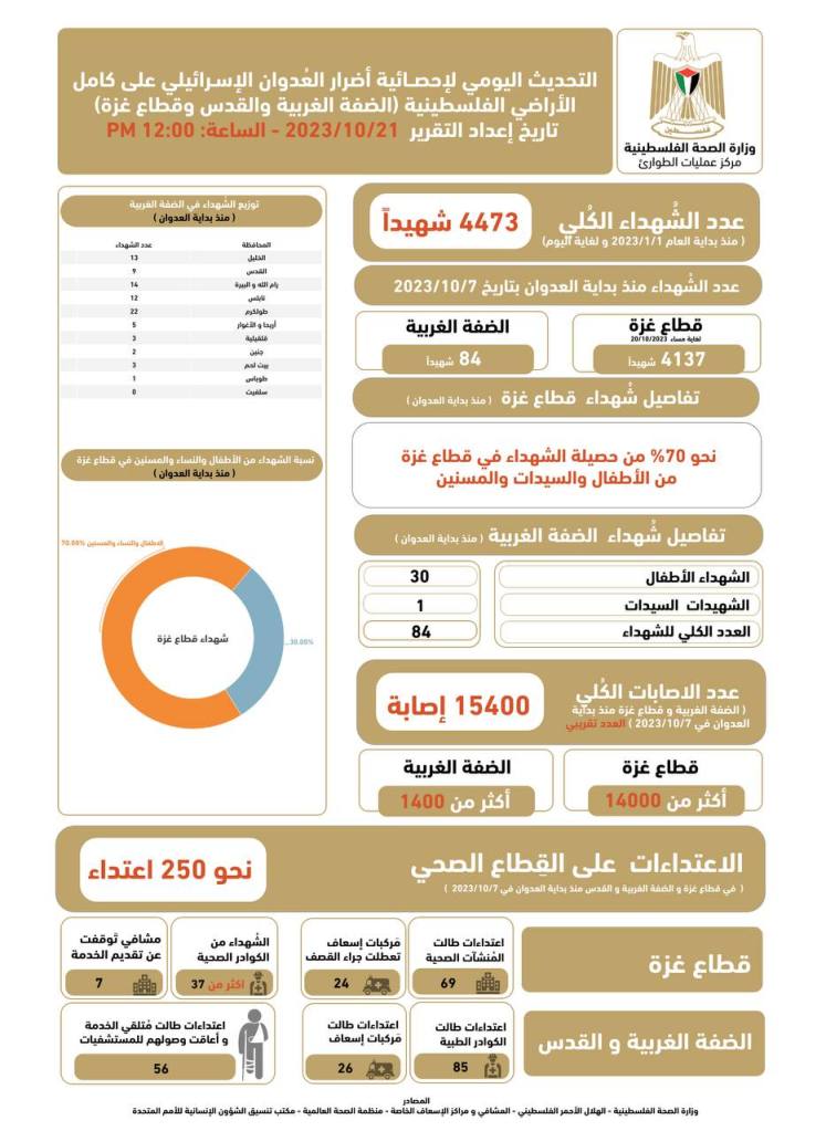 In the West Bank and Al-Quds: 85 attacks on health personnel, 26 attacks on ambulances, 56 attacks targeted recipients of health services and hindered hospital access.