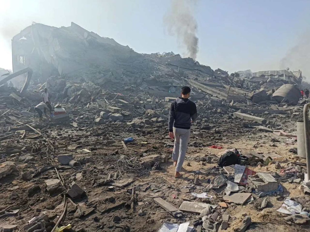In total over 25 buildings were totally razed to ground by the Israeli terrorists. The massacre of Azzahra Residential complexes, central Gaza.