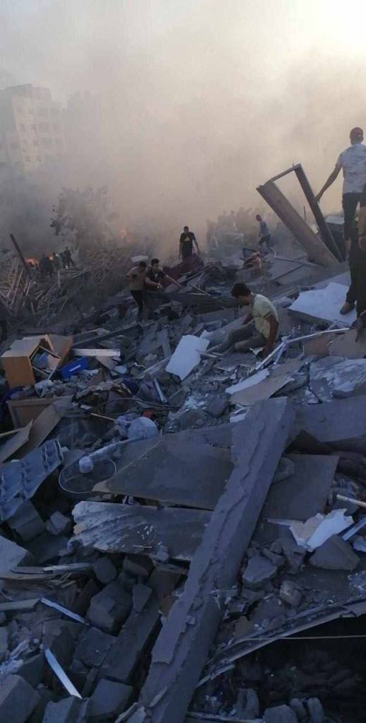 Ministry of Interior in Gaza reported a large number of martyrs and wounded in the IOF targeting of several towers and buildings in the Al-Jala’a area in Gaza City.