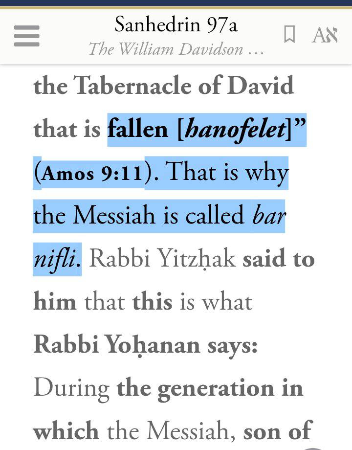 Fallen, the jewish messiah is called the bar nifli. Fallen son in the talmud.