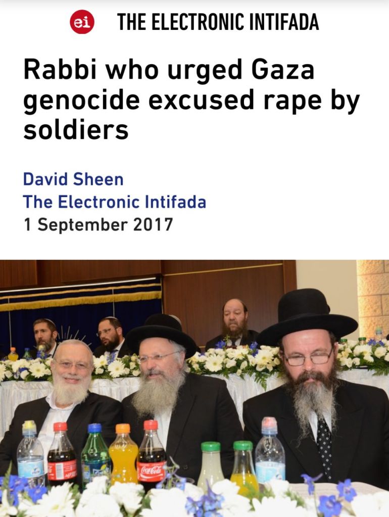 Rabbi who urged Gaza genocide excused rape by soldiers |