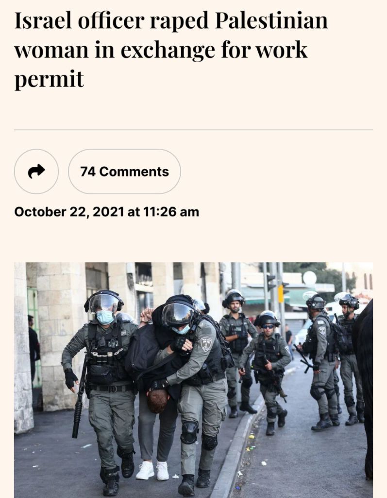 Israel officer raped Palestinian woman in exchange for work permit | Middle East Monitor | 22 October 2021