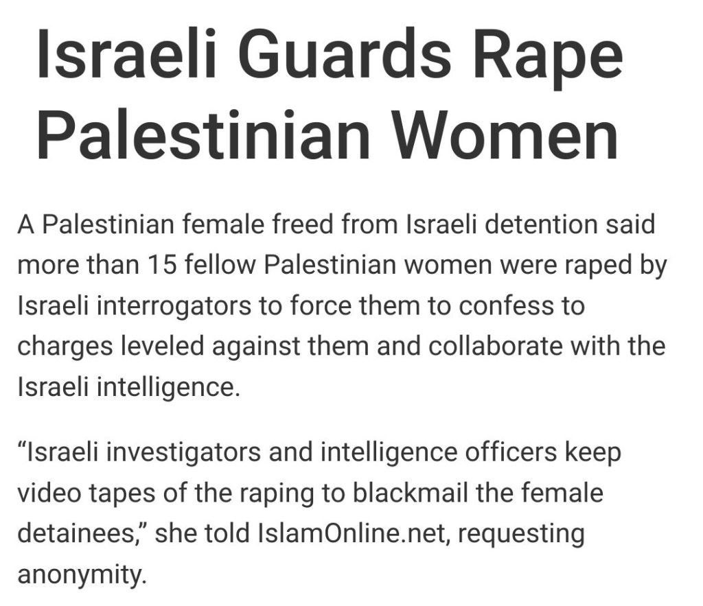 People are spreading baseless rumours of Hamas rapes yet here we have verified cases of IOF soldiers raping Palestinian girls.