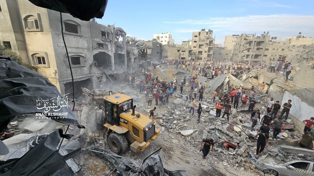 — ✡️ BREAKING: The Jewish Satanic occupation has razed Jabalia refugee camp’s most populated neighborhood using 6 one-ton American highly destructive bombs. The neighborhood, consisting of 20 residential buildings, was razed to the ground with hundreds of people underneath the rubble, martyred and wounded.