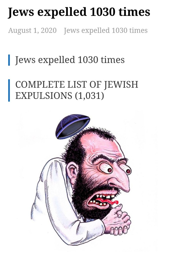“When we look at history, even going further back than the last 126 years, there has been a predicament called the jewish problem. In England from 1290 to 1656, for about 350 or 400 years the jews were expelled from England, and under no circumstances were they allowed to come back. What was the reason for this?.. All the jews, no matter where they lived, had an issue with the non-jews.”