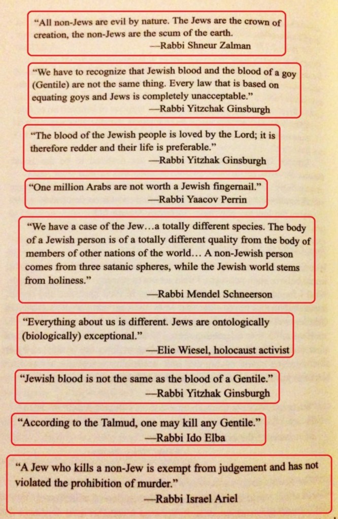 ”Godly and compassionate”, ladies and gentlemen? No, the issue isn’t “Zionism” only; the issue runs deeper into these distorted religious texts. When will this small minority of ”anti-Zionist Jews” denounce their Jewish Supremacy?