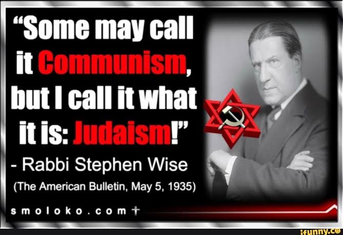 In 1935, the most famous rabbi in America, Rabbi Stephen Wise, a friend of President Roosevelt, boasted: “Some call it Marxism, I call it Judaism.” (The American Bulletin, May 5,1935)