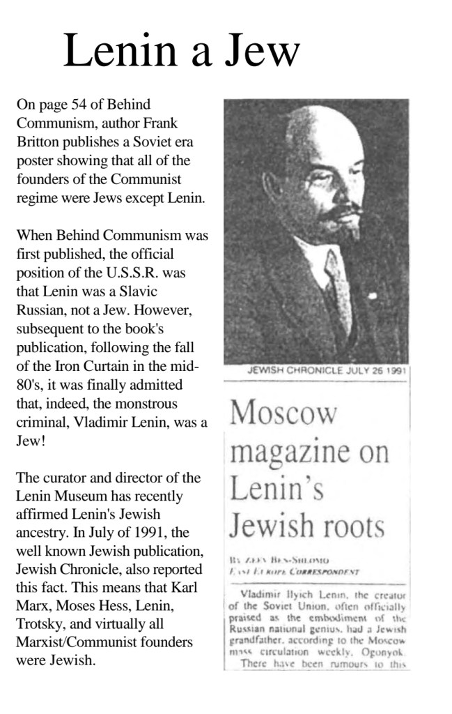 This book, Behind Communism, by Frank Britton, further elaborates on the astute knowledge held by Winston Churchill, Vladimir Putin, and others who have studied world history. It explains who Karl Max was- he was the grandson of a Jewish rabbi. It reveals how a small band of Jewish criminals masterminded by Jewish bankers in New York and Germany, took over one of the world’s greatest empires.