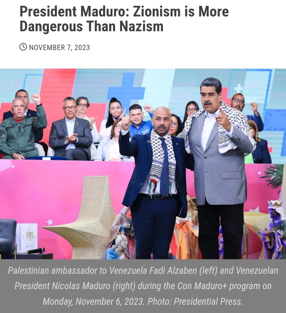 Venezuelan President Nicolás Maduro knows the Zionist entity’s Genocidal nature all too well.
