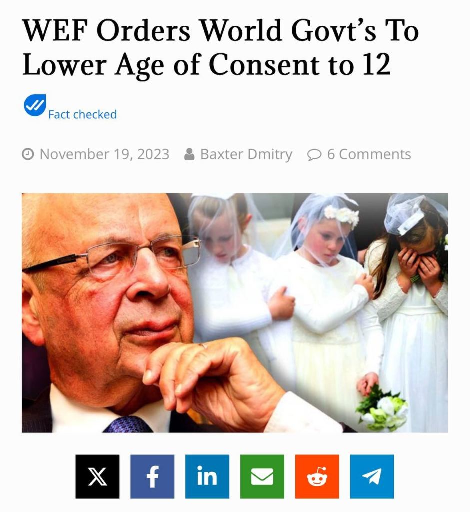 The World Economic Forum has ordered governments around the world to reduce the age of consent to 12 years and decriminalize pedophilia.