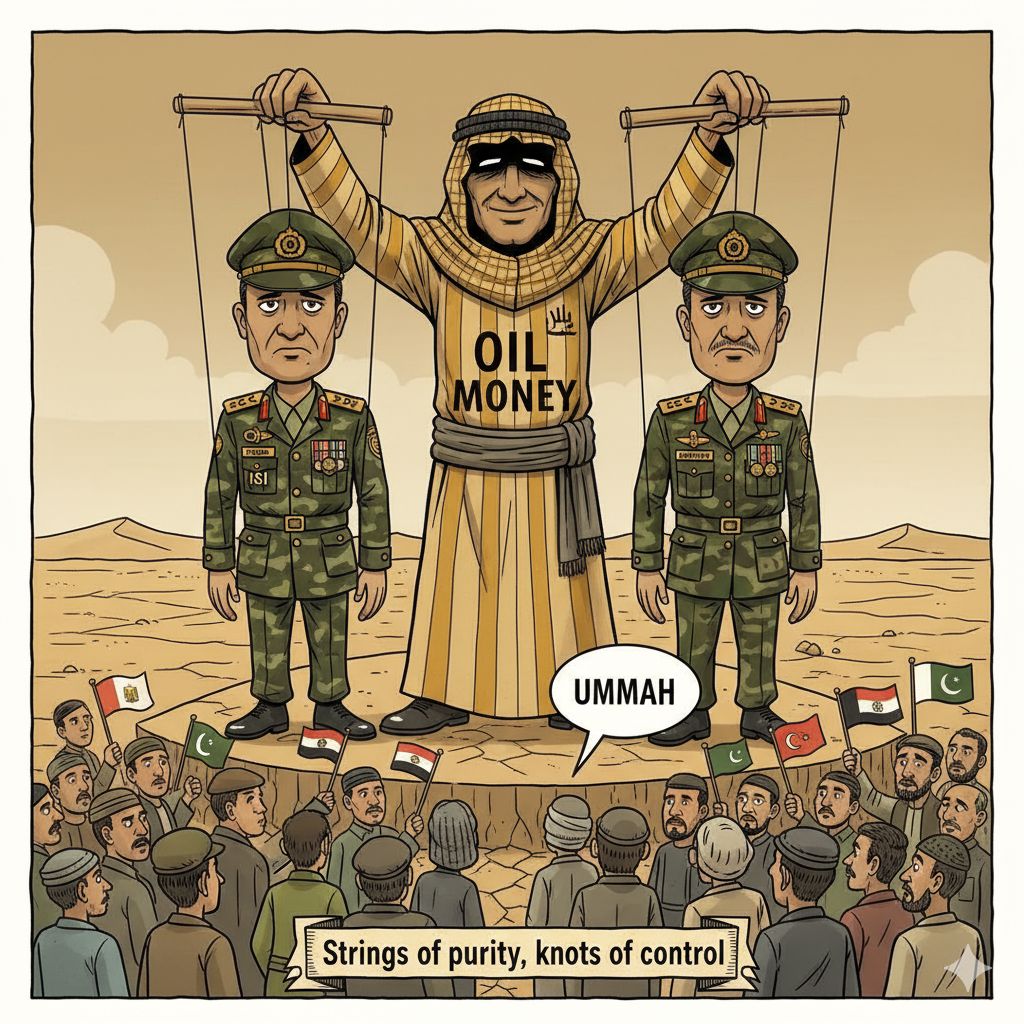 The ideological overlay is not incidental. Saudi Arabia and the UAE have long exported Salafi/Wahhabi ideology, especially via funding of madrassas, clerical networks, religious charities, and also built strategic ties with Pakistan’s military. Some salient points: